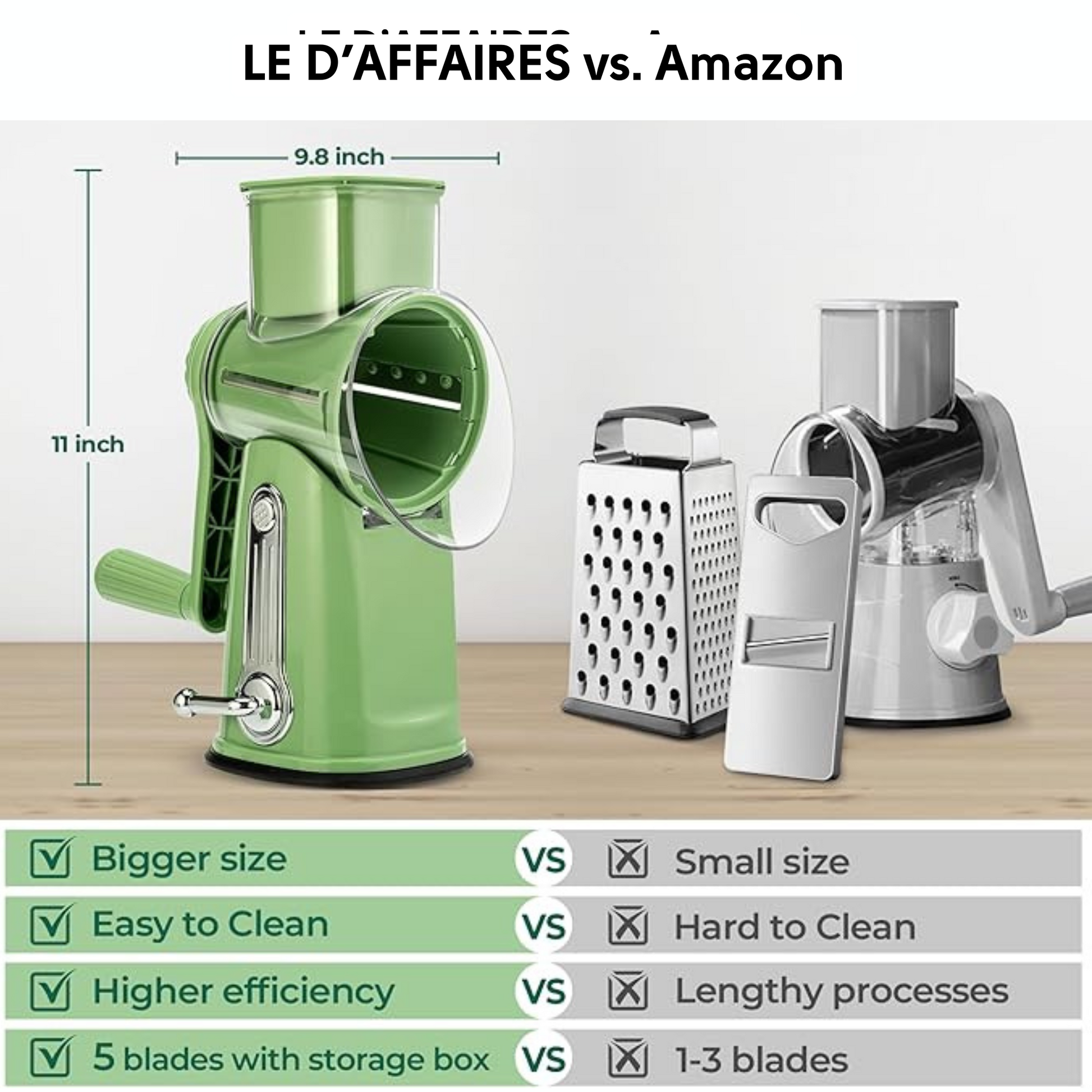 Nuestro Rallador Gourmet procesa los alimentos 12 veces MÁS RÁPIDO que los métodos convencionales. ¡Así que ralla, corta y tritura tus favoritos y diviértete mientras lo haces!